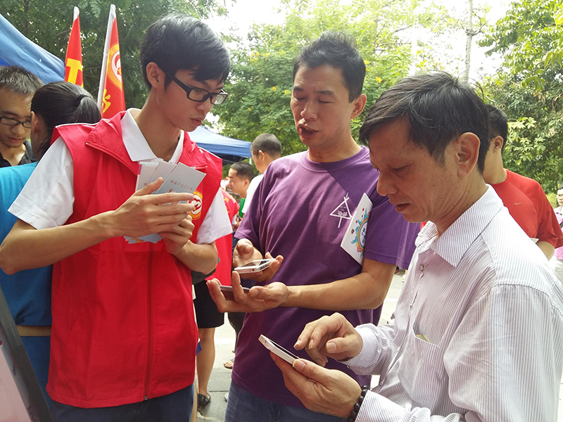 2015年8月29日,東莞通黨員、團(tuán)員在萬(wàn)江汽車總站,參加市直工委舉辦的“踐行核心價(jià)值觀,便民服務(wù)我先行”黨員志愿服務(wù)活動(dòng)。