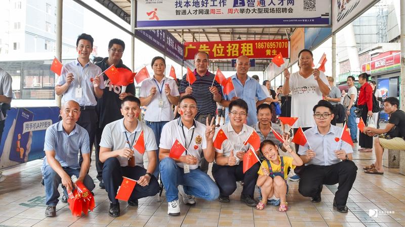 2019年10月1日,東莞巴士在松山湖汽車客運站向市民派發(fā)國旗