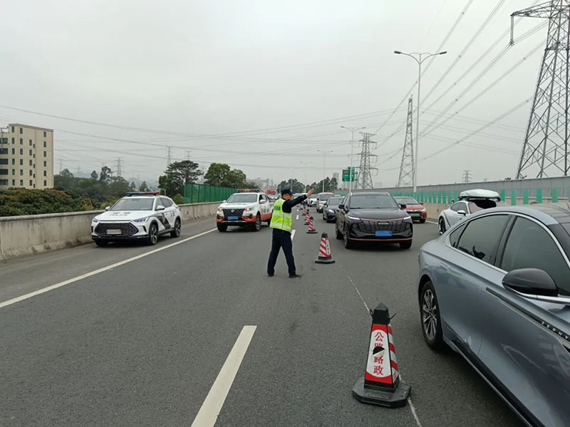 在收費(fèi)站出入口,落實(shí)開足車道、疏導(dǎo)分流等措施,增加工作人員做好現(xiàn)場值守管控,著力保障收費(fèi)站通行順暢。在返程高峰來臨前,配合東莞電視臺(tái)播出高速公路返程車流預(yù)判信息,提醒市民群眾注意錯(cuò)峰出行。