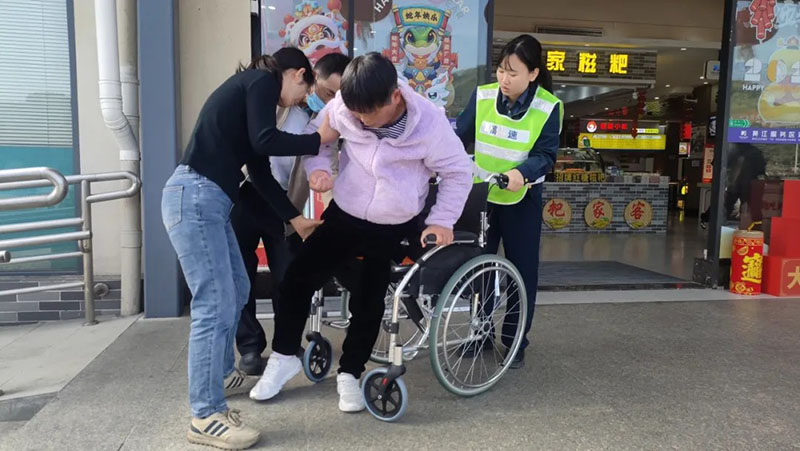 近日,黃江服務(wù)區(qū)管理人員張麗艷在巡查時(shí),發(fā)現(xiàn)一名行動(dòng)不便的旅客,由兩名家人攙扶著艱難地往洗手間的方向走去。見此情況,張麗艷迅速拿出了服務(wù)區(qū)的備用輪椅,協(xié)助旅客通過無障礙通道進(jìn)入服務(wù)區(qū)大樓,這一暖心舉動(dòng)贏得了過往旅客和陪同家人的稱贊。