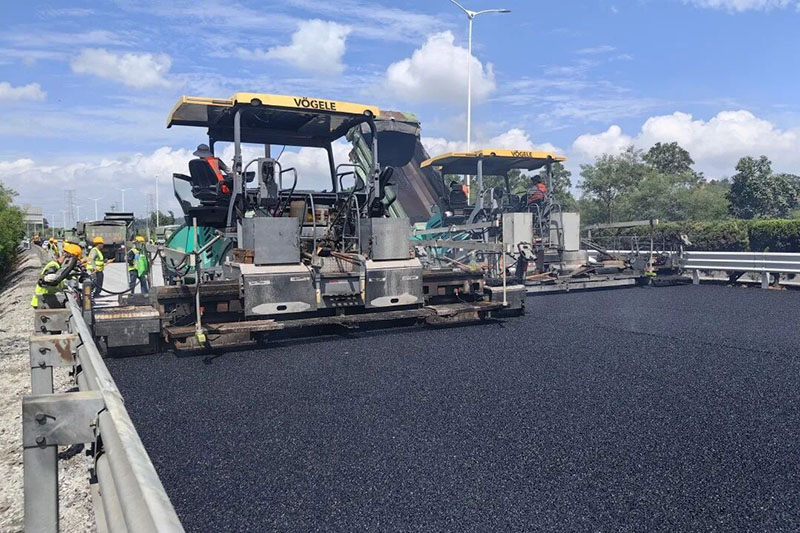 項目自9月15日啟動以來,封閉施工期間內連續(xù)經(jīng)受了今年“第17號臺風米娜、第18號超強臺風樺加沙”的嚴峻考驗。為順利完成東行段的施工,工程項目團隊提前做好專項應急預案,采用“整體布局+分段推進+動態(tài)優(yōu)化”策略,爭分奪秒搶回工期。經(jīng)過15天的晝夜奮戰(zhàn),日均投入施工及管理人員達400人次、機械設備180余臺,高峰時攤鋪設備達15臺,同步實施多工序交叉作業(yè),順利完成了東行段路面罩面工程任務,為群眾安全便捷出行提供了堅實保障。