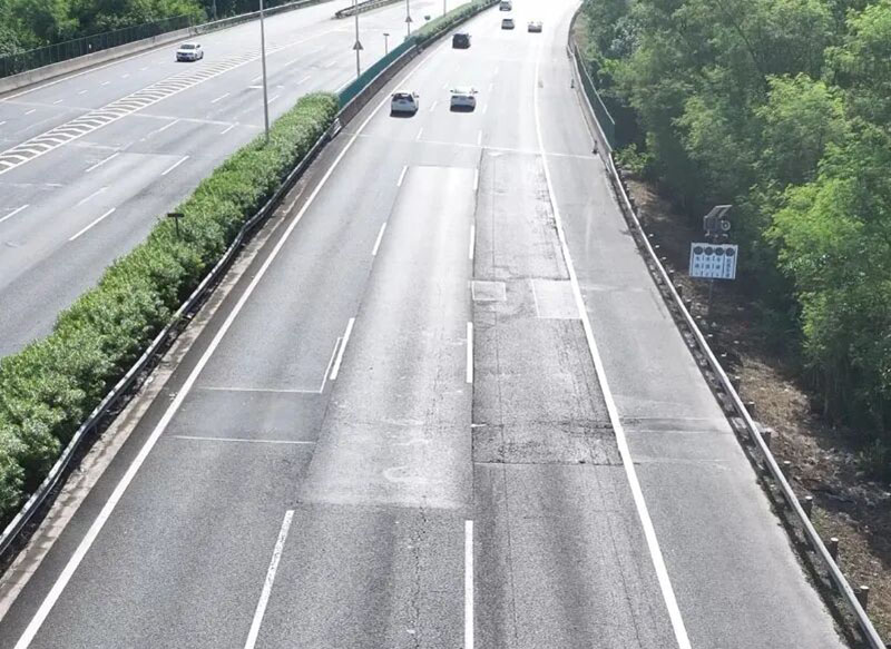 升級后:路面平整光潔無明顯病害,高韌材料讓行車顛簸感顯著減弱;雙組份標線色澤鮮亮,夜間反光清晰醒目,整體通行體驗全面提升。