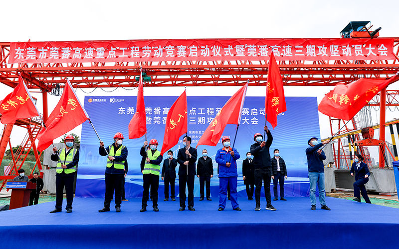 2022年12月14日,由東莞市總工會(huì)、東莞交投集團(tuán)工聯(lián)會(huì)聯(lián)合開展東莞市莞番高速重點(diǎn)工程勞動(dòng)競(jìng)賽啟動(dòng)儀式在莞番三期項(xiàng)目現(xiàn)場(chǎng)舉行