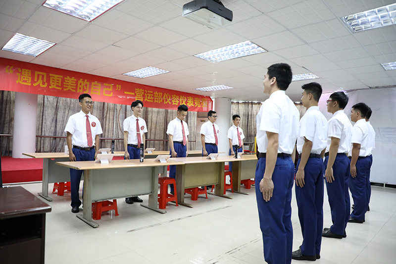 2018年9月13日, 東莞控股公司周年慶系列活動之“幸福都是奮斗出來的”業(yè)務(wù)競賽,圖為儀容儀表整理。